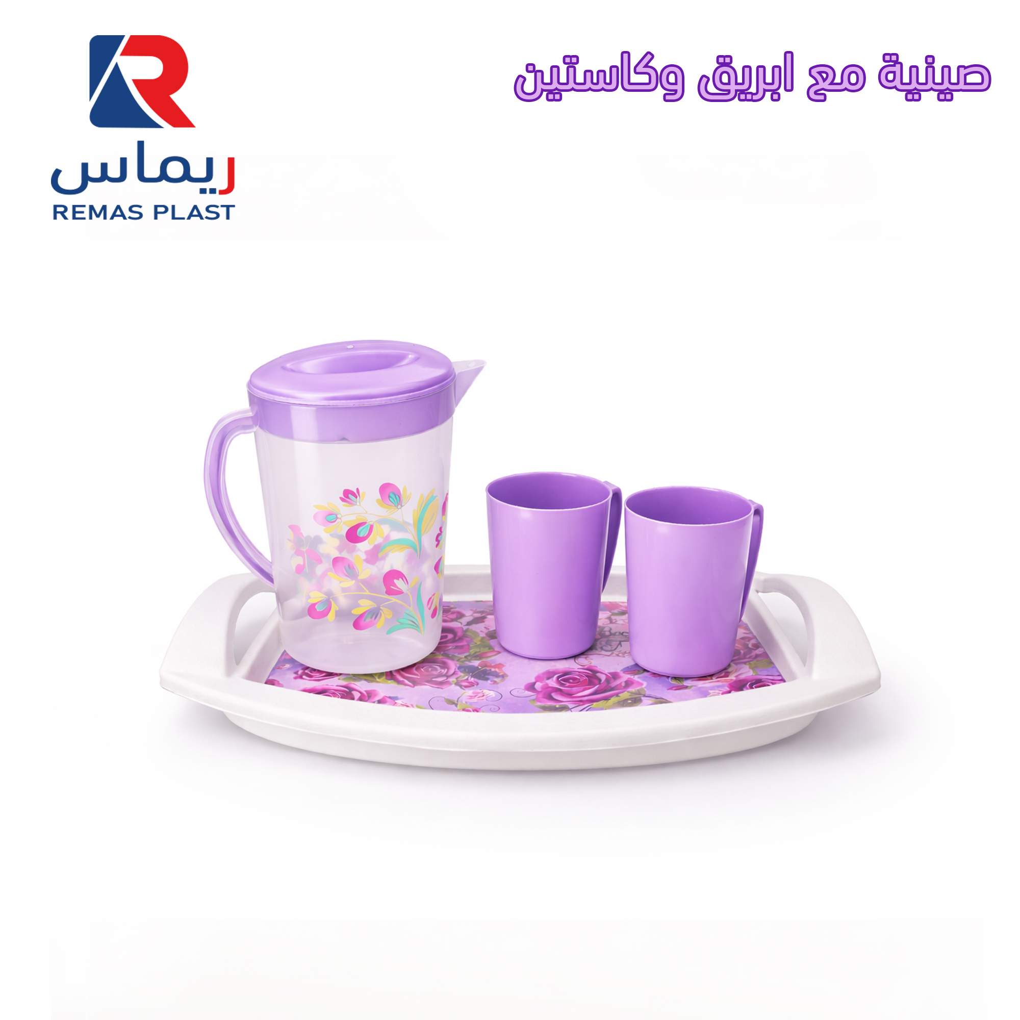صينية مع إبريق وكاستين